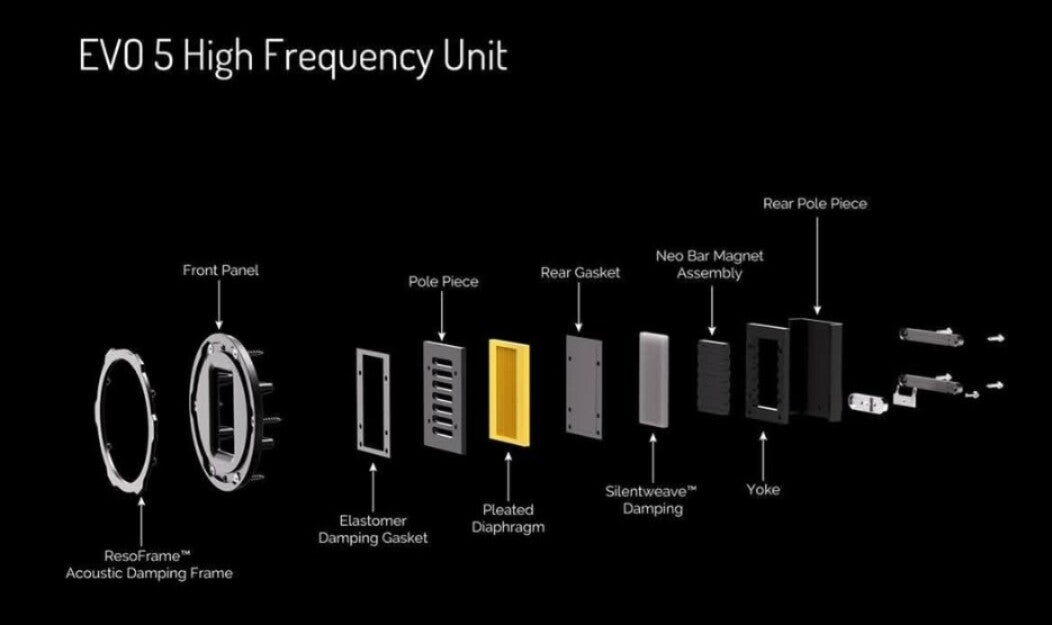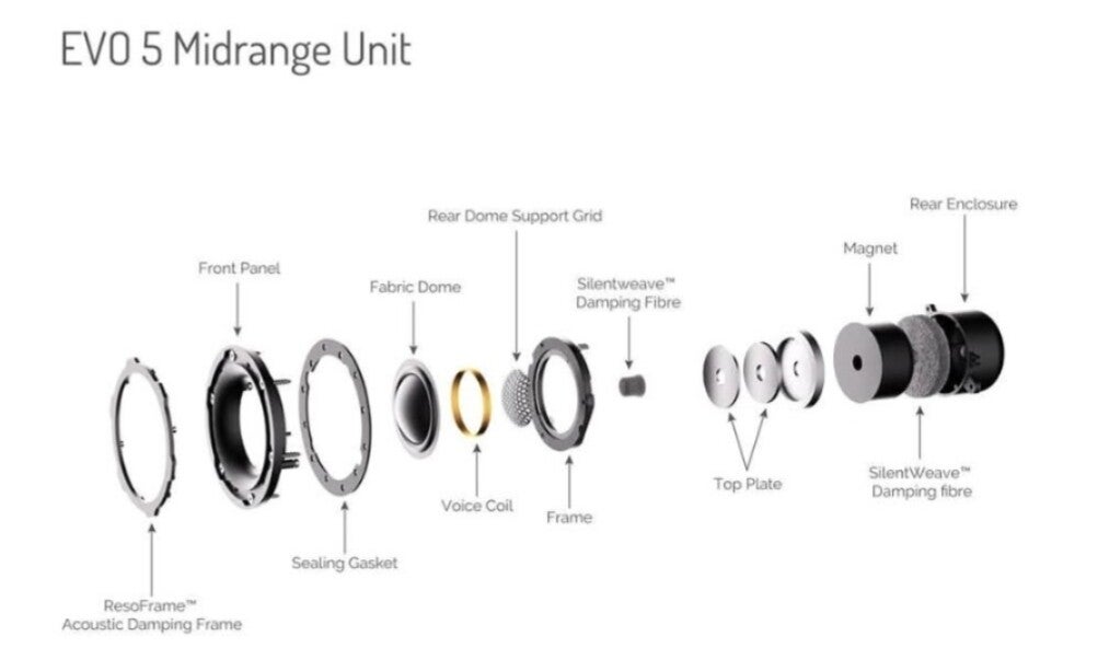 The new 5.2 is set to replace the existing EVO 4.2 which launched back in 2019, was notable for taken more than a few cues from the Flagship Elysian , involved the AMT (Air Motion Transformer) treble units and redesigned cabinets with slot-loaded ports. The increased size assured 'furthet improves efficiency and dispersion'. Additional new sound-absorbing 'SilentWeave' that sits behind the diaphragm 'to reduce sound wave reflection inside the cabinet'. All the driver units ultimately benefit from this new " ResoFrame' acoustic damping system,.... A smoother response for lower treble band.