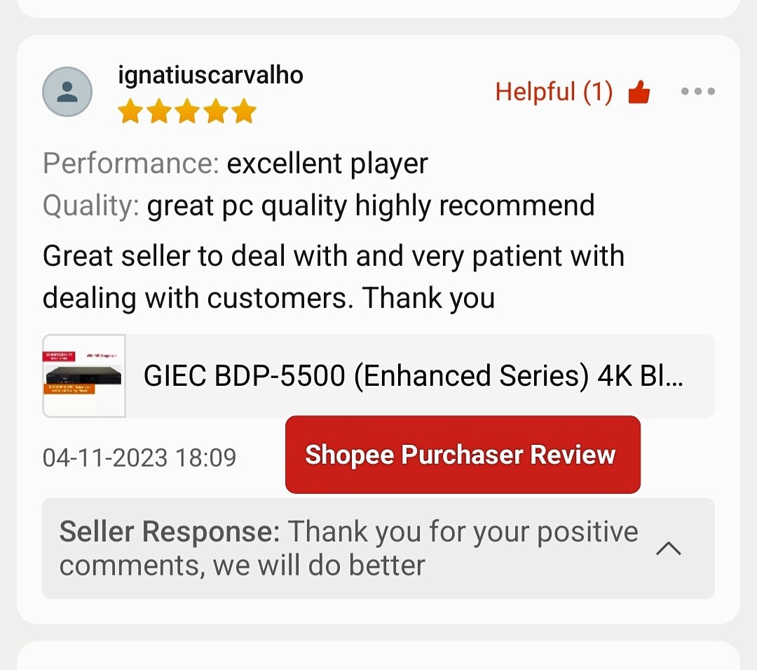 GIEC BDP-G5500 PLUS (Enhanced) 4K Blu-Ray Player