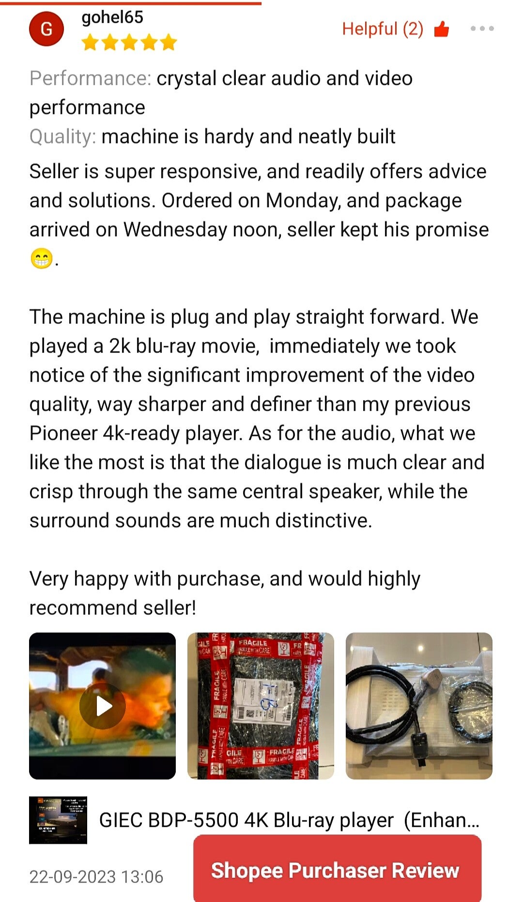 The FOC Atelier Rullit Junior Power Cord (2m) terminated with UK unbreakable plug top and Danish LessLoss Figure 8 Female terminal (worth RM380) is an advantage to insert directly to this BD player ( one step more closer to Oppo 205)