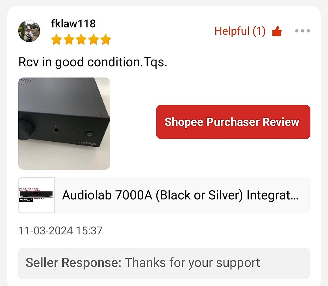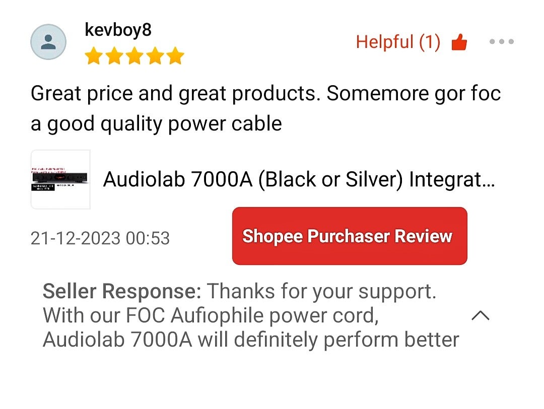 Audiolab 7000A Integrated Amplifier + FOC cable worth RM980