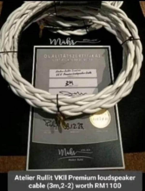 FOC : Atelier Rullit 'LessLoss' VKll Premium spk cable (3m pair, 2-2) worth RM1,100.00